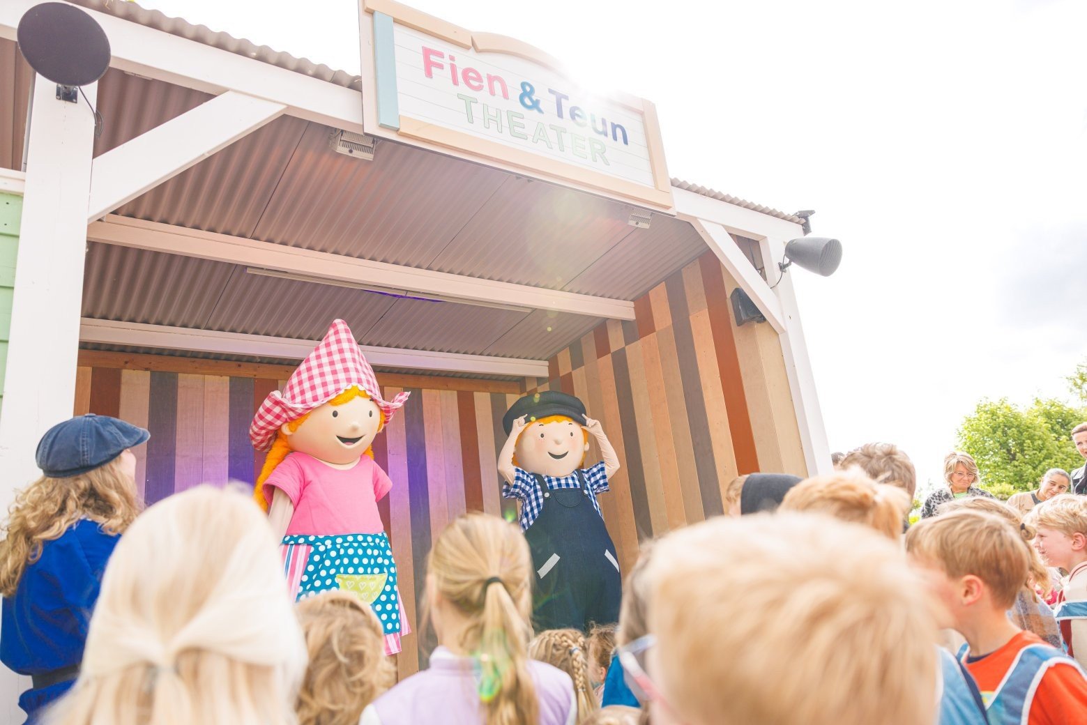 Naast attracties ontdek je op de Avonturenboerderij nog veel meer. Het attractiepark voor kinderen staat namelijk vol interactieve belevenissen.Ga bijvoorbeeld op bezoek bij de Molenaar in de échte oude molen, maak een ritje op een van onze lieve pony’s of bezoek de moestuin. Zo ontdek je hoe het leven op de boerderij eruitziet. Je kinderen steken zelf de handen uit de mouwen. Ook ontmoet je regelmatig Fien en Teun tijdens vrolijke shows en meet & greets. Samen zingen, dansen en lachen hoort er natuurlijk bij. Voor veel kinderen vormt dit hét hoogtepunt van de dag.