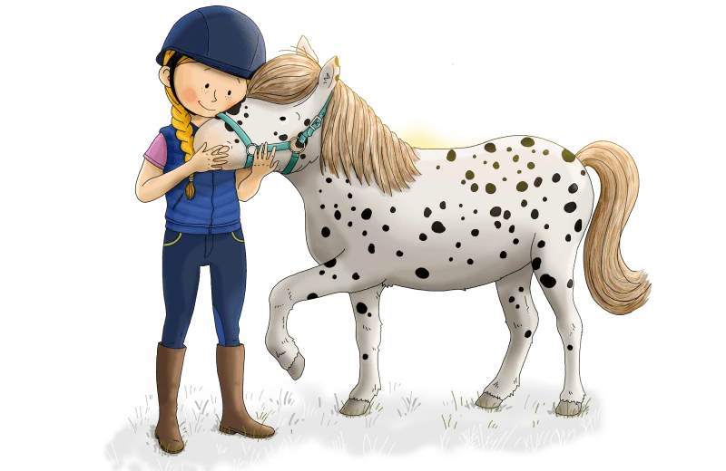 Stip is een ondeugende, grappige en lieve, witte Shetlandpony vol zwarte stippen. Hij is kampioen ontsnappen en door de modder rollen en is altijd in voor een avontuur óf een lekker hapje. Stip wordt verzorgd door Emma. Ze komt elke dag naar de boerderij waar Stip op stal staat. Dan haalt ze de klitten uit zijn manen met een manenkam, borstelt ze zijn vacht met een roskam en krabt ze zijn hoeven met een hoevenkrabber. En als Stip dan weer helemaal mooi schoon is… rolt die ondeugende pony het liefst weer in de modder!